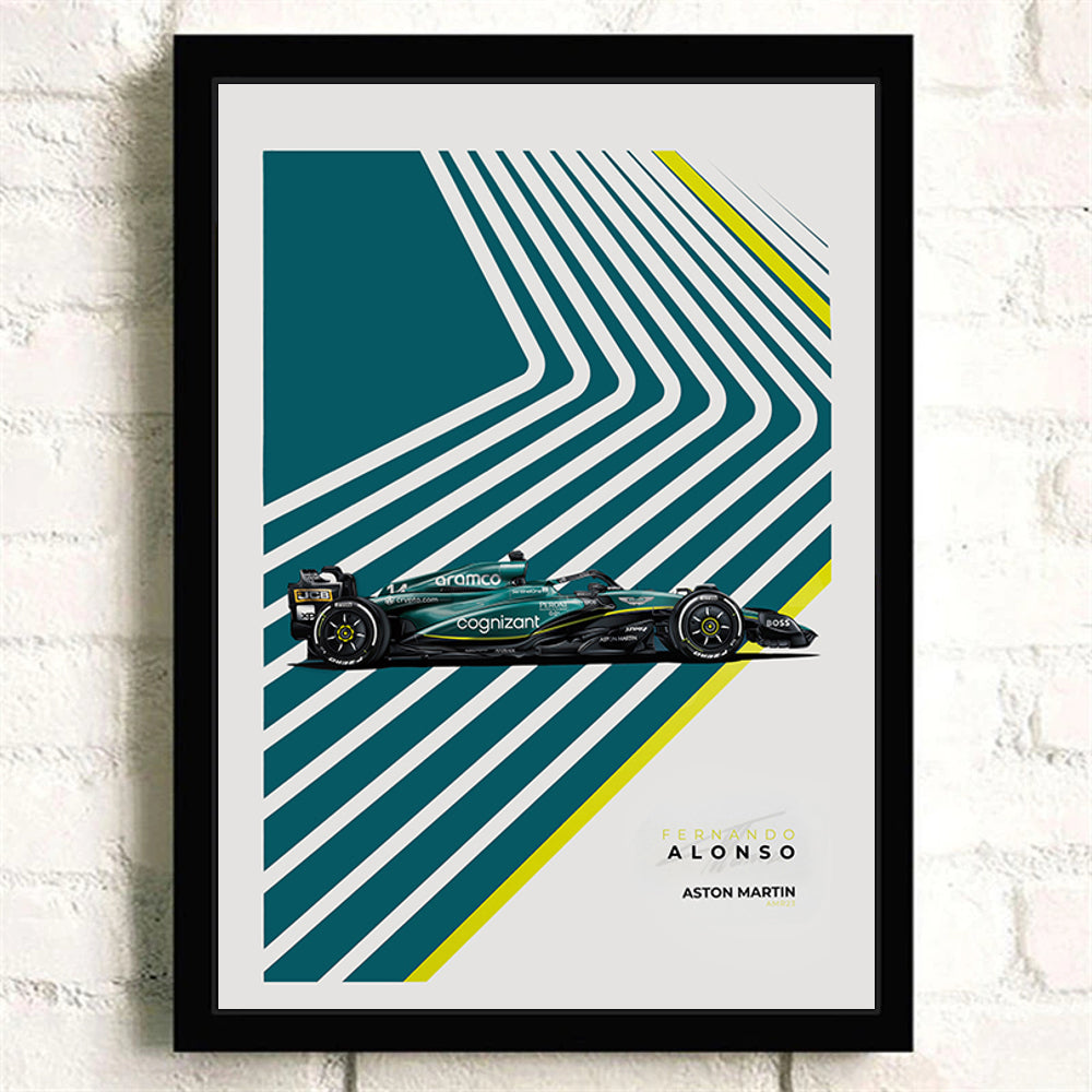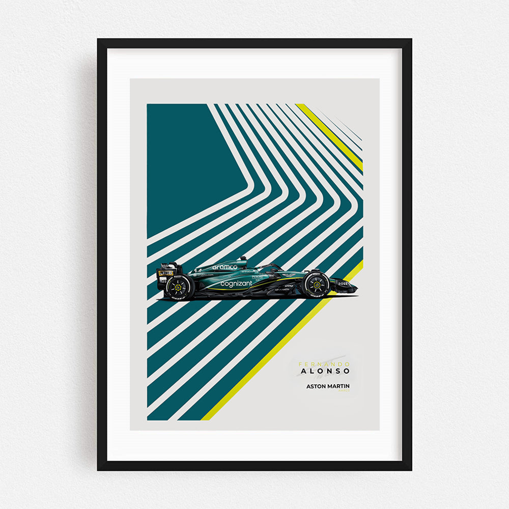 Get the legendary Aston Martin AMR23 straight into your living room with this stunning poster, picturing the Car and the Driver Signature with this Poster variant.